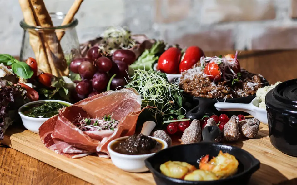 Prøv f.eks. vores antipasti, den italienske udgave af tapas. Her får du virkelig mulighed for en kulinarisk rejse gennem Italien, da du selv vælger en god håndfuld sydlige specialiteter. Vi anbefaler et godt glas italiensk rødvin til.